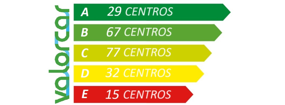 A VALORCAR classifica o desempenho anual dos centros da REDE VALORCAR em cinco categorias (A,B,C,D,E), tendo em conta indicadores como o número de VFV...
